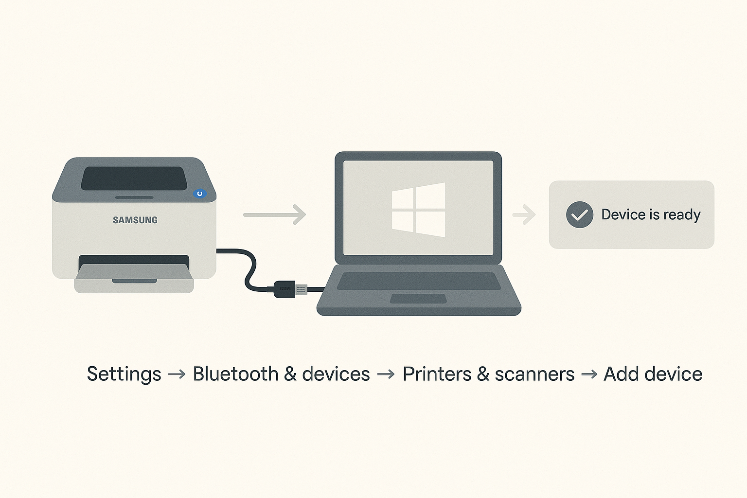 설정 → Bluetooth 및 장치 → 프린터 및 스캐너 → 장치 추가